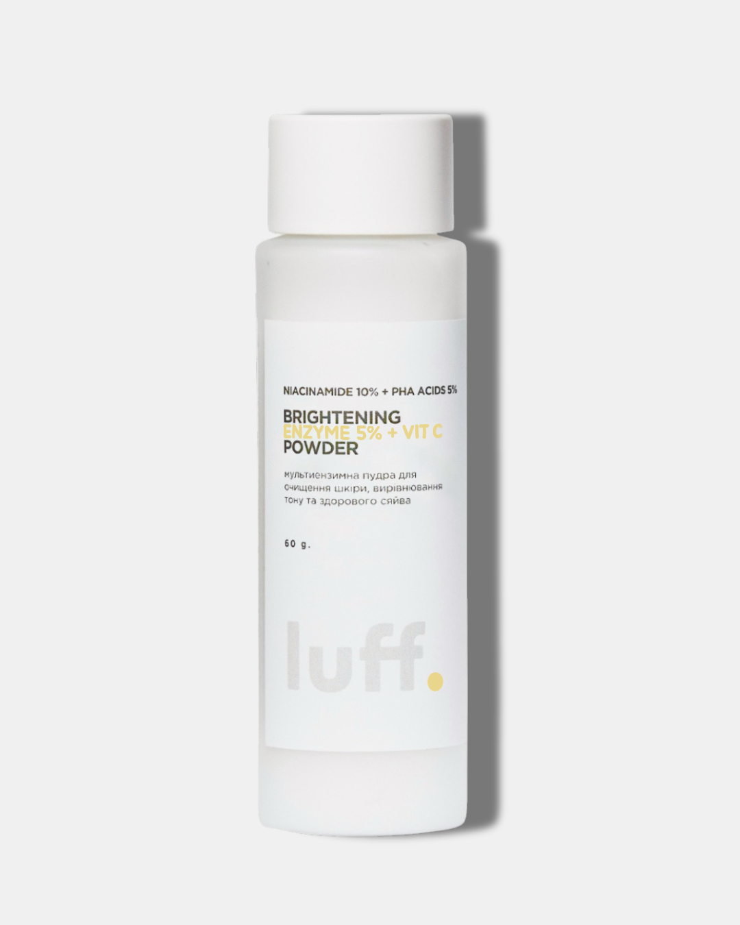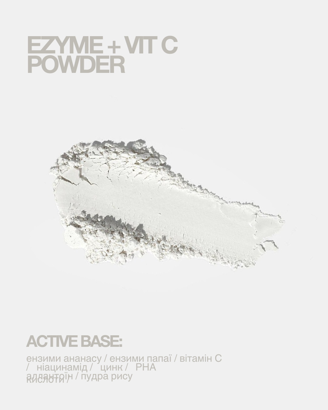 Мультиензимна пудра з вітаміном С, ніацинамідом та м`якими РНА кислотами направлена на делікатне відлущення ороговілих клітин, покращення тону та текстури шкіри вже після першого застосування.