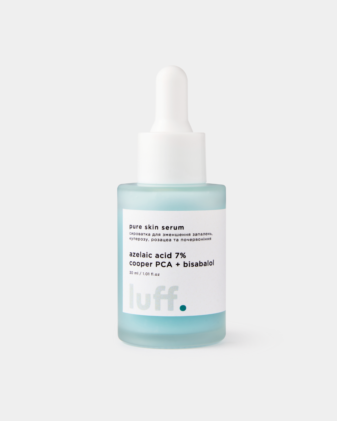 Ця сироватка — спеціалізований засіб для шкіри, схильної до запалень, розацеї та куперозу. Завдяки потужним активним компонентам, таким як спеціальна форма азелаїнової кислоти, мідь РСА та бісаболол, сироватка ефективно бореться з запаленнями, зменшує почервоніння та зміцнює судини. Протизапальна дія сироватки допомагає знижувати активність патогенних мікроорганізмів, що можуть спричиняти висипання і подразнення на шкірі. Водночас, її здатність зміцнювати стінки капілярів робить її ідеальною для боротьби з куперозом і розацеєю.